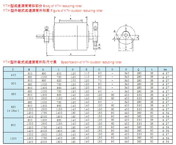 產(chǎn)品名稱:YTH型外裝式減速滾筒