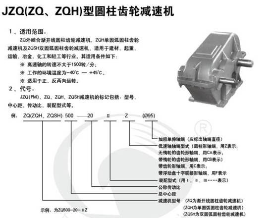 JZQ(ZQ.ZQH)型圓柱齒輪減速機(jī),廣泛應(yīng)用于各種起重、運(yùn)輸、礦山機(jī)械及其他各種機(jī)械中作減速之用。